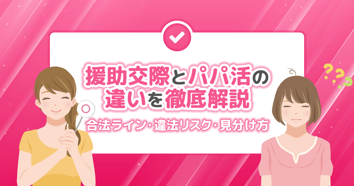 ここでは、援助交際とパパ活の違いを整理しながら、どこから違法になるのか、安心して活動するために知っておくべきポイントを解説します。